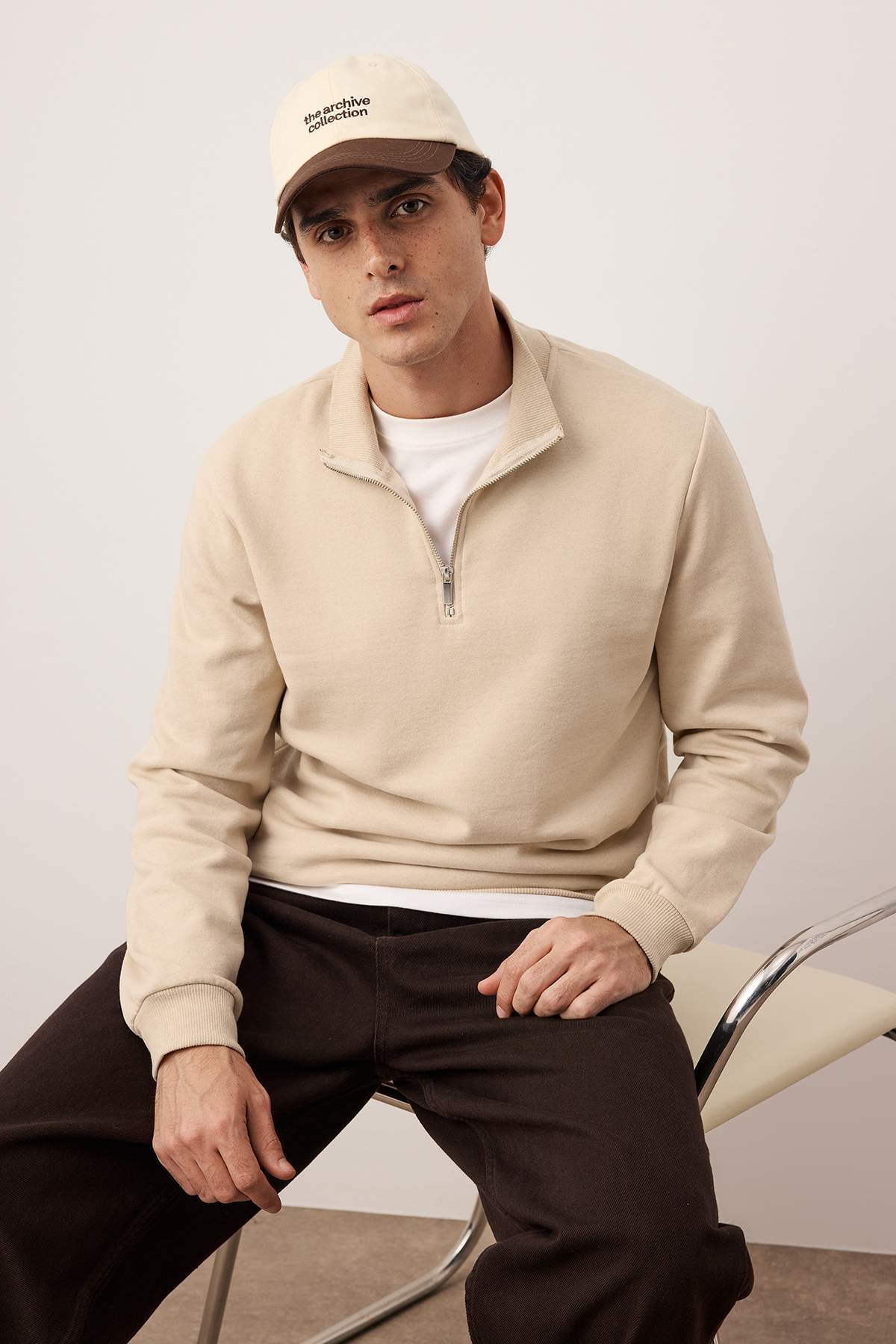 Trendyol Collection Kamienna Regular/Normalny krój Stojący kołnierz Gruba bluza z polarową podszewką TMNAW26SW00021