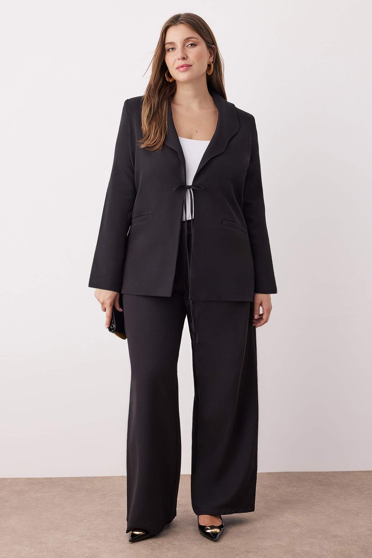 Trendyol Curve Czarna marynarka o regularnym kroju z detaliami przy kołnierzu i rękawach, w dużych rozmiarach TBBAW26AG00027