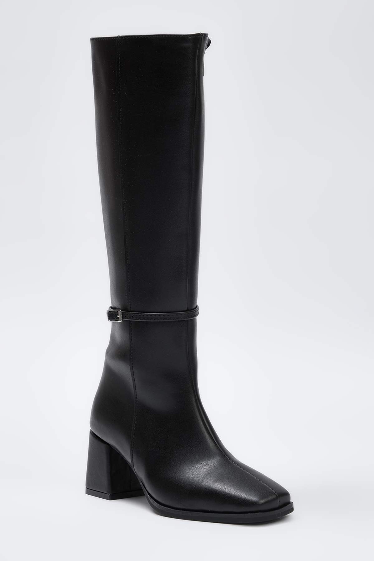 Trendyol Shoes Czarne buty damskie z kwadratowym noskiem i czarnym paskiem, obcas blokowy 6,5 cm TAKAW26CZ00007