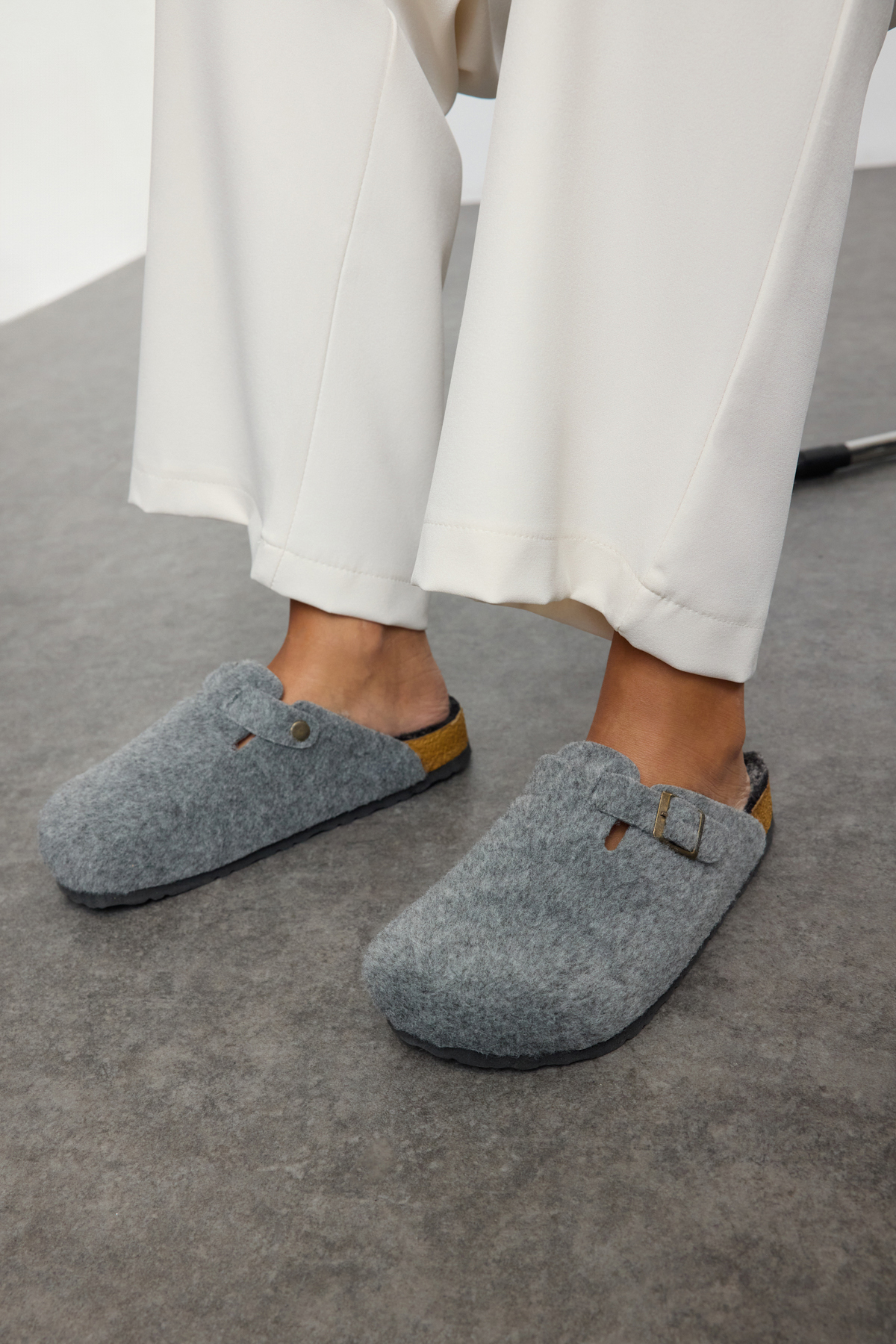 Trendyol Shoes Szare, futrzane kapcie damskie Sabo Takaw25Er00010
