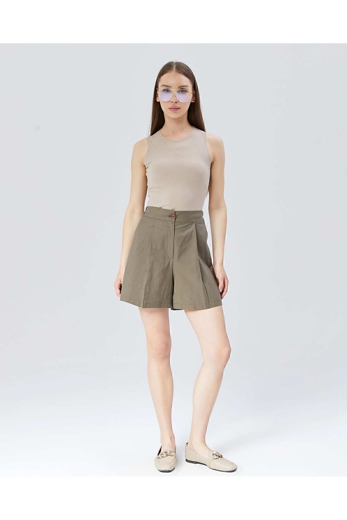 POD Ofis Tarzı Şort Etek Pileli