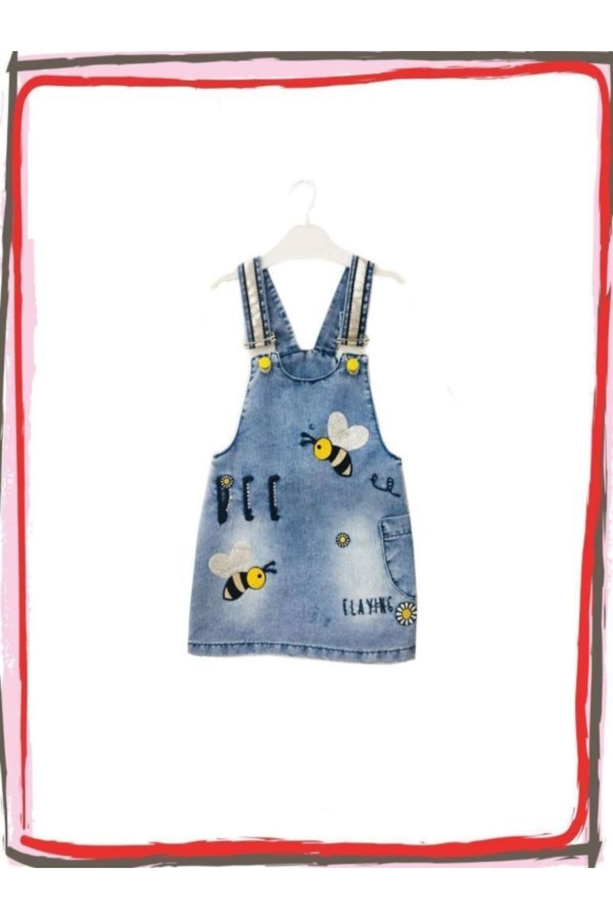 PODİUM GİYİM Kız Bebek Sevimli Arı Temalı Kot Elbise