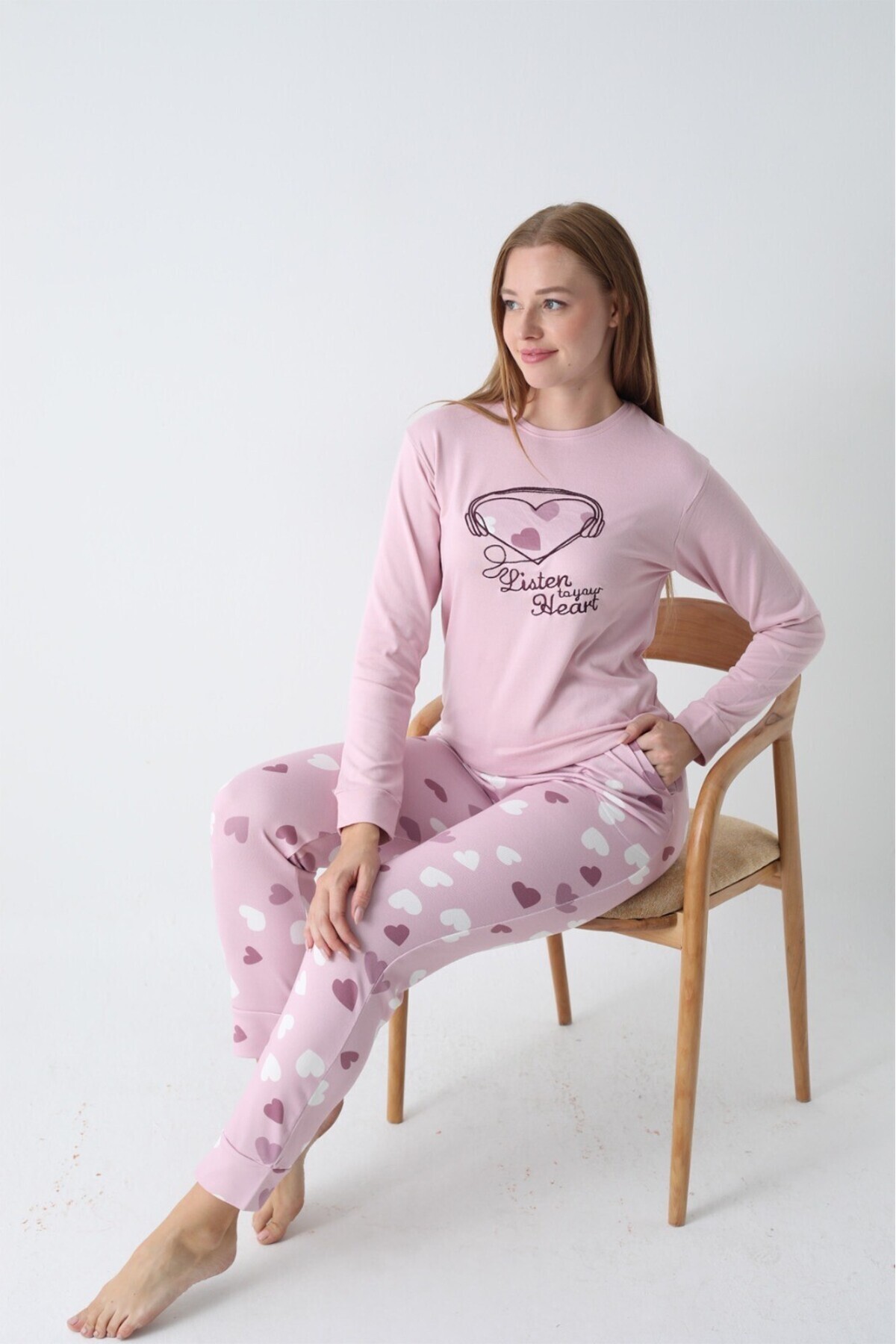 POLATYILDIZ PEMBE KALPLİ PİJAMA TAKIM