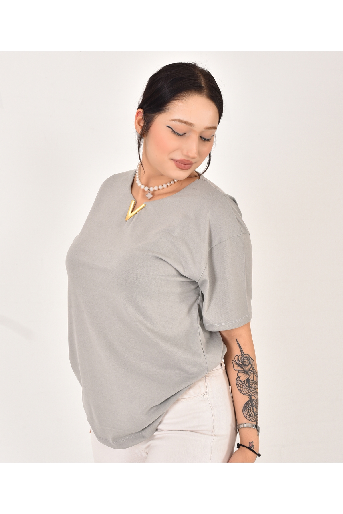 Pollux Kadın V Aksesuar Detaylı Basic Tişört Özellikleri