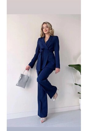 HOEK Kadın Lacivert Blazer Ceket Palazzo Pantolon Takım Elbise