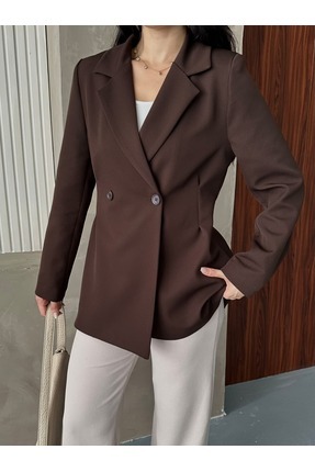 HOEK Kadın Kahverengi Blazer Ceket Palazzo Pantolon Takım Elbise