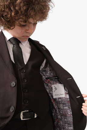 Zekids Erkek Çocuk Duble Saten Yakalı Yaka İğneli 5 Parça Takım Elbise(11-14 Yaş Arası)