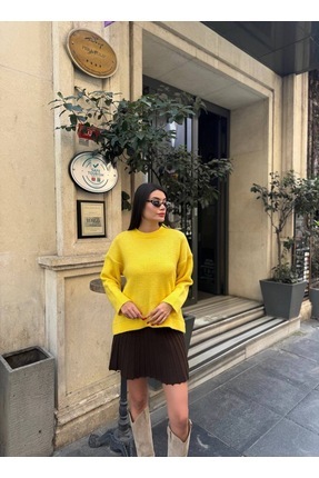 Little Visqon Kadın Uzun Kollu Balıkçı Yaka Belden Yaka Belden Büzgülü Kısa Triko Elbise