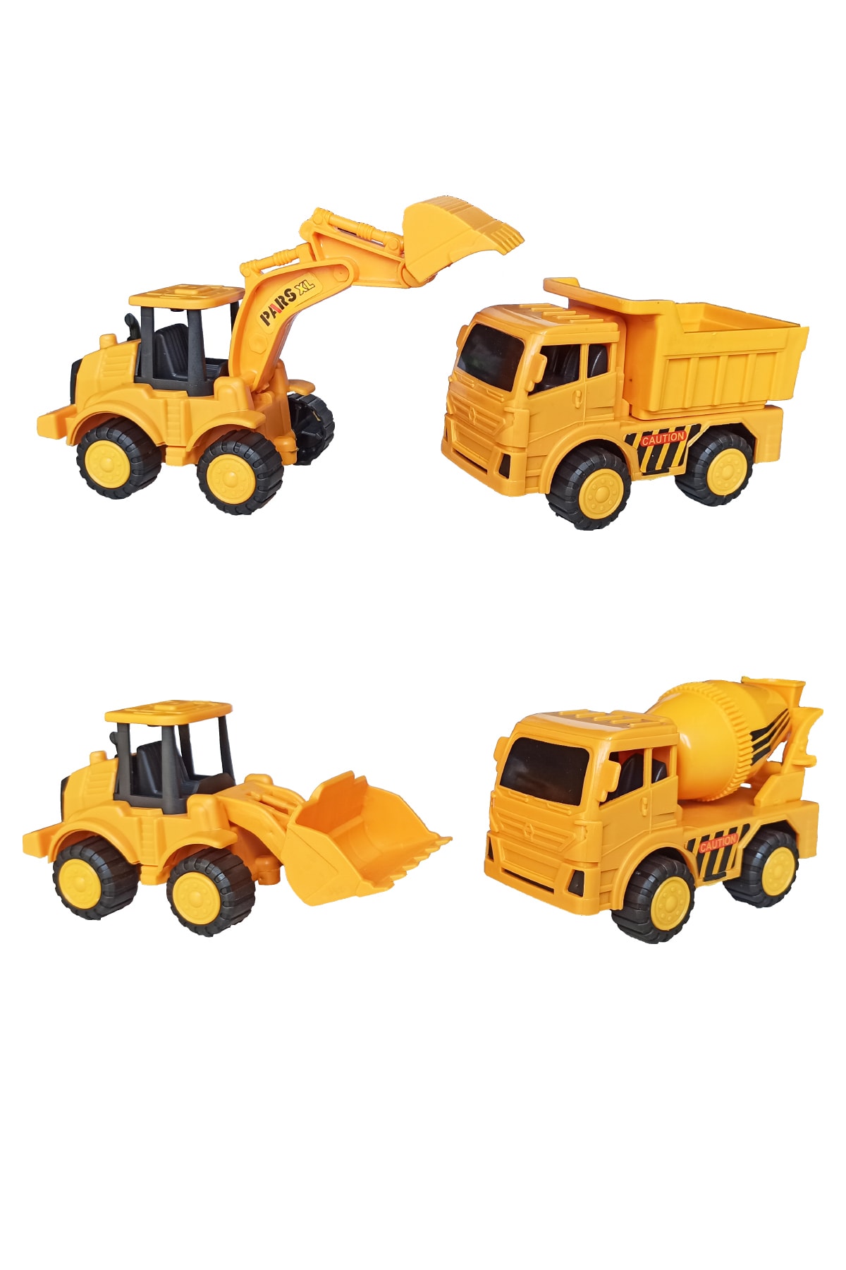 PopŞeker Oyuncak 4'lü Iş Makinaları Seti Dozer, Kepçe, Mikser Ve Kamyon, Sürtmeli Set