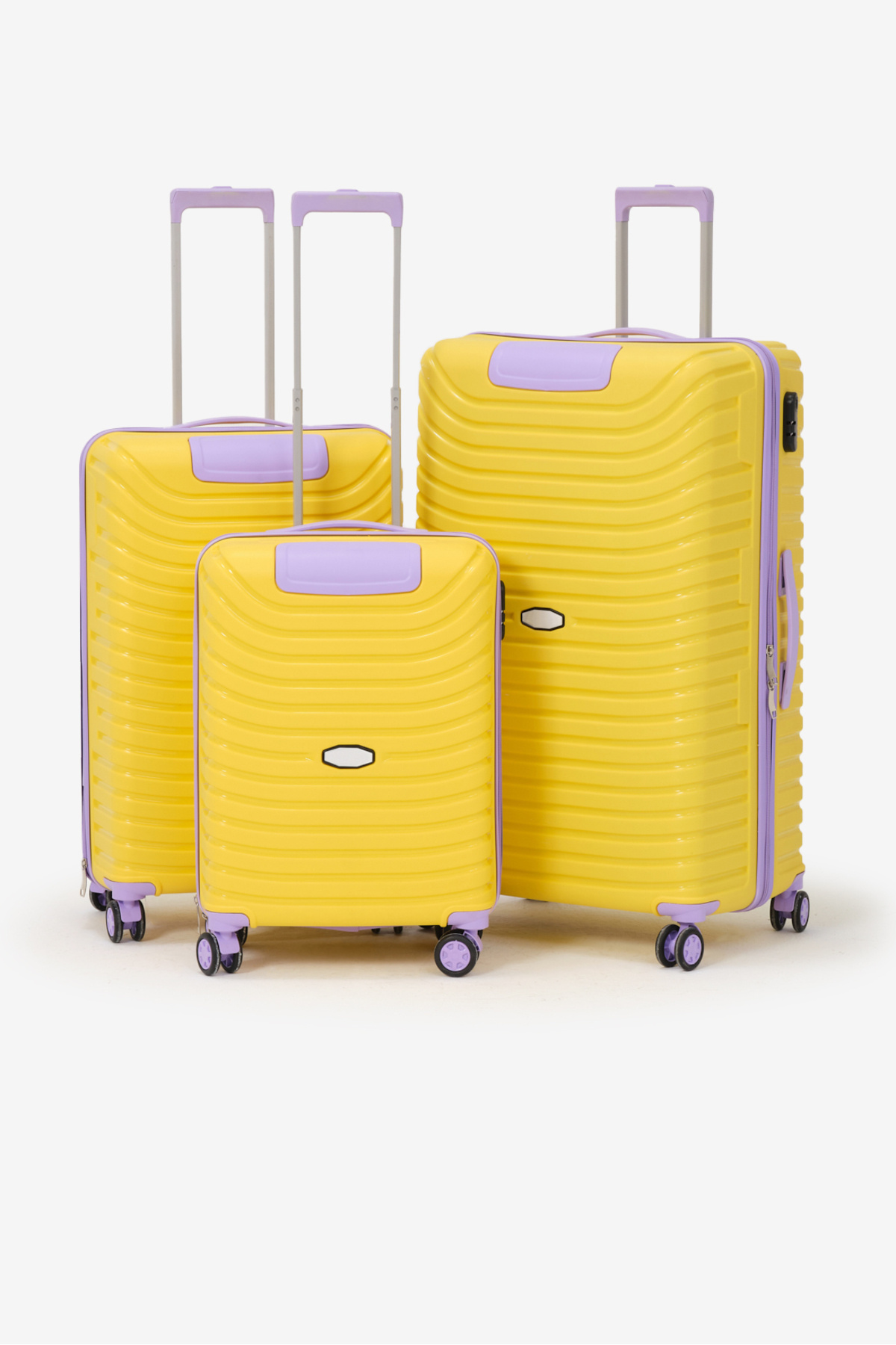 PowerSpeed Unisex Sarı Lila 3'lü Set Silikon Kırılmaz PP Valiz