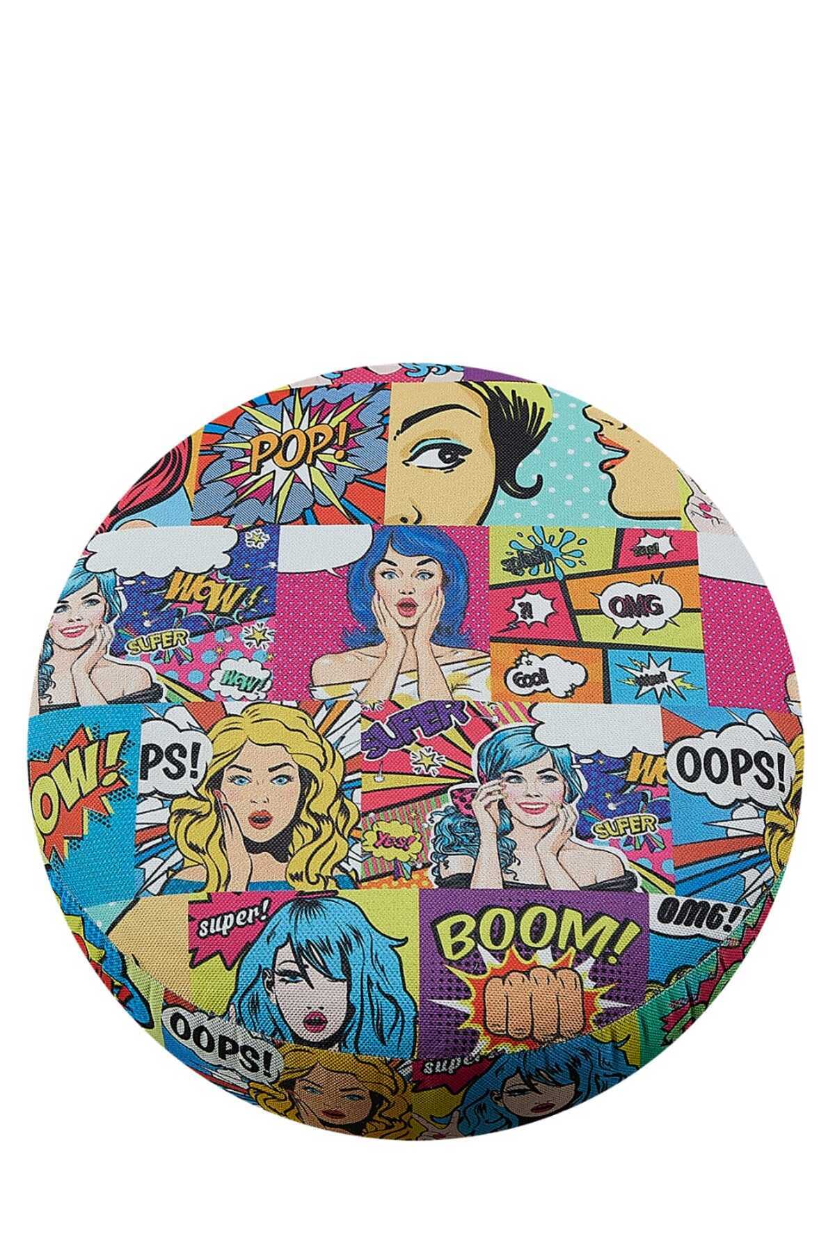 PUFYCO Pop Art Desenli 40*40 Yuvarlak Puf