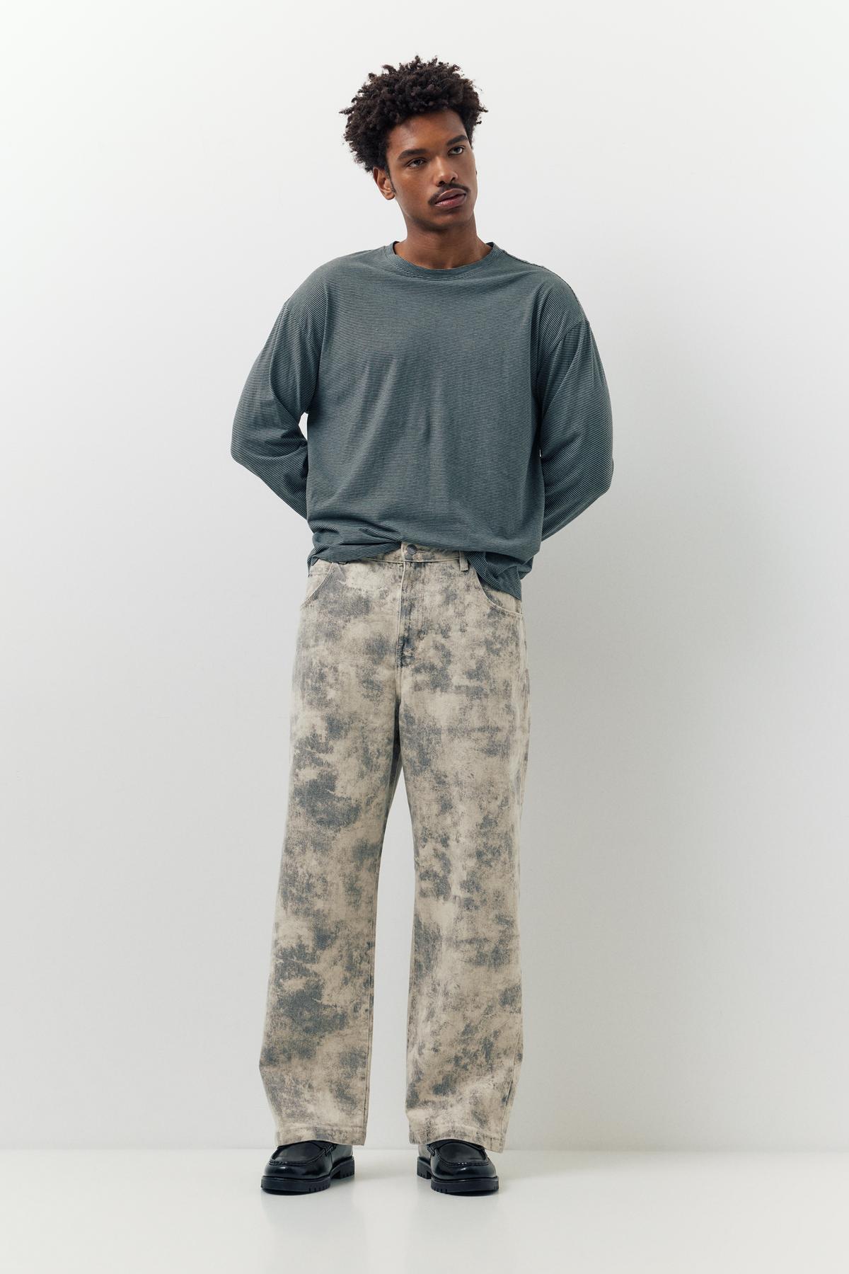 Pull & Bear Desenli geniş paça jean Özellikleri