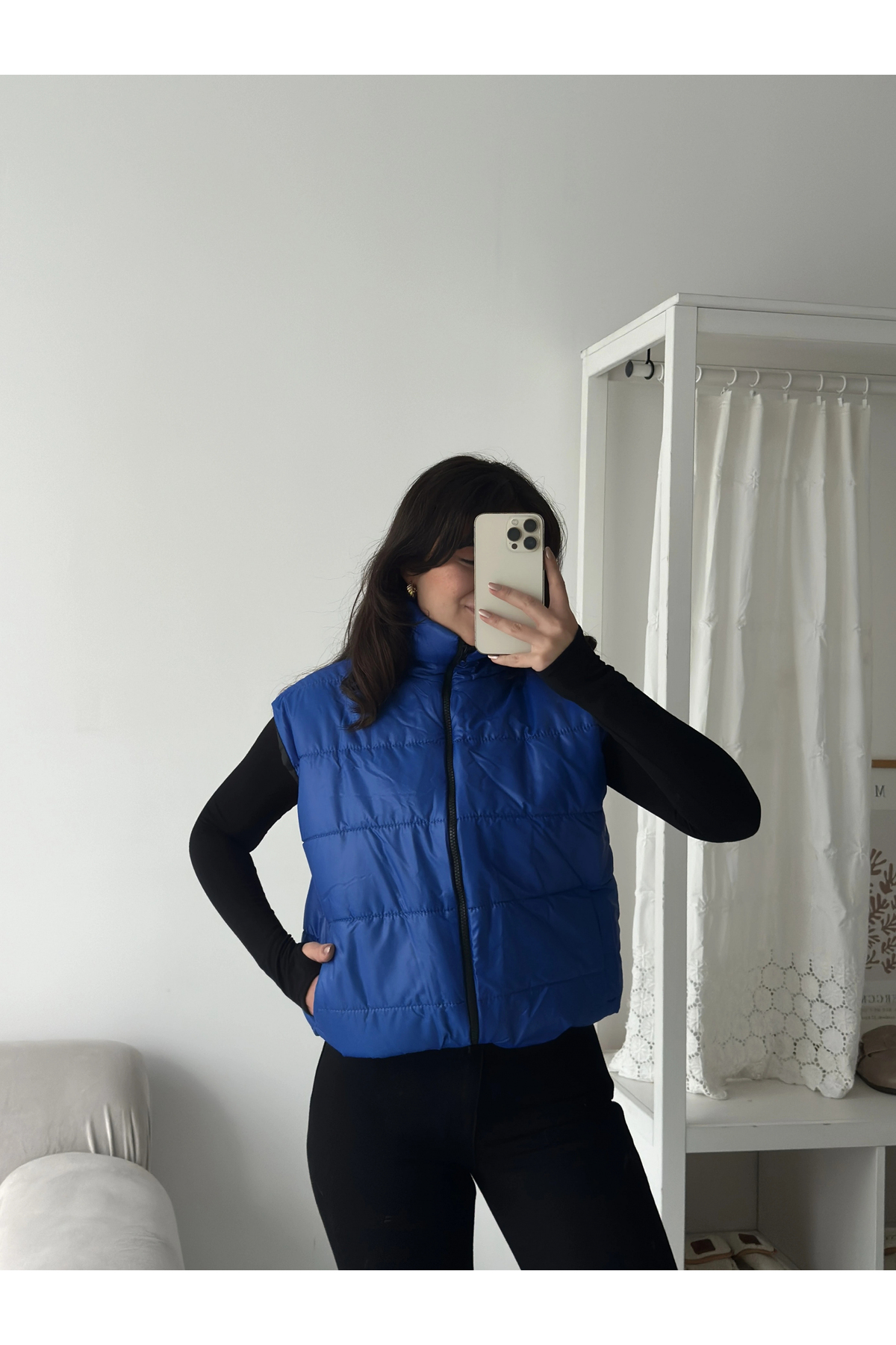 Pullaps Altı Lastikli Çift Cepli Şişme Yelek Mavi