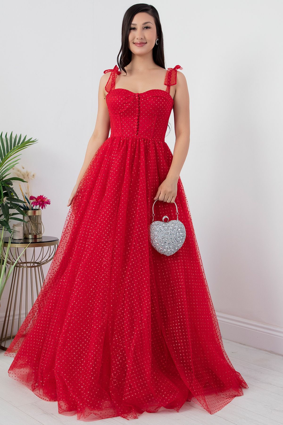 PULLIMM Askılı Simli Tül Elbise ECR5331 Özellikleri
