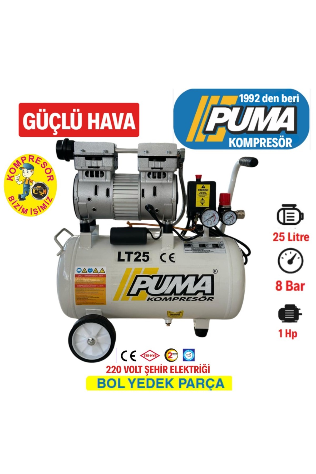 Puma 25 Lt Kompresör (YAĞSIZ) Özellikleri