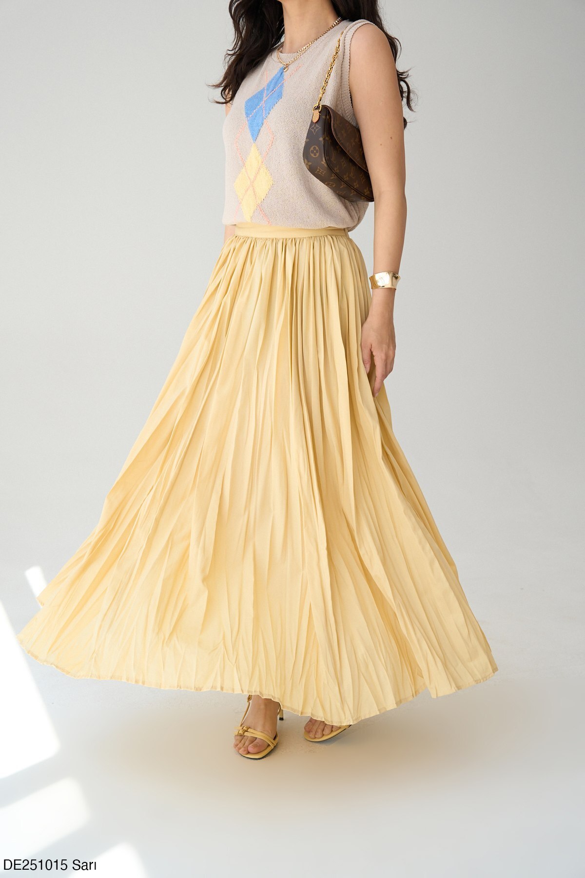 Qu Style Yüksek Bel Piliseli Uzun Etek Sarı Özellikleri