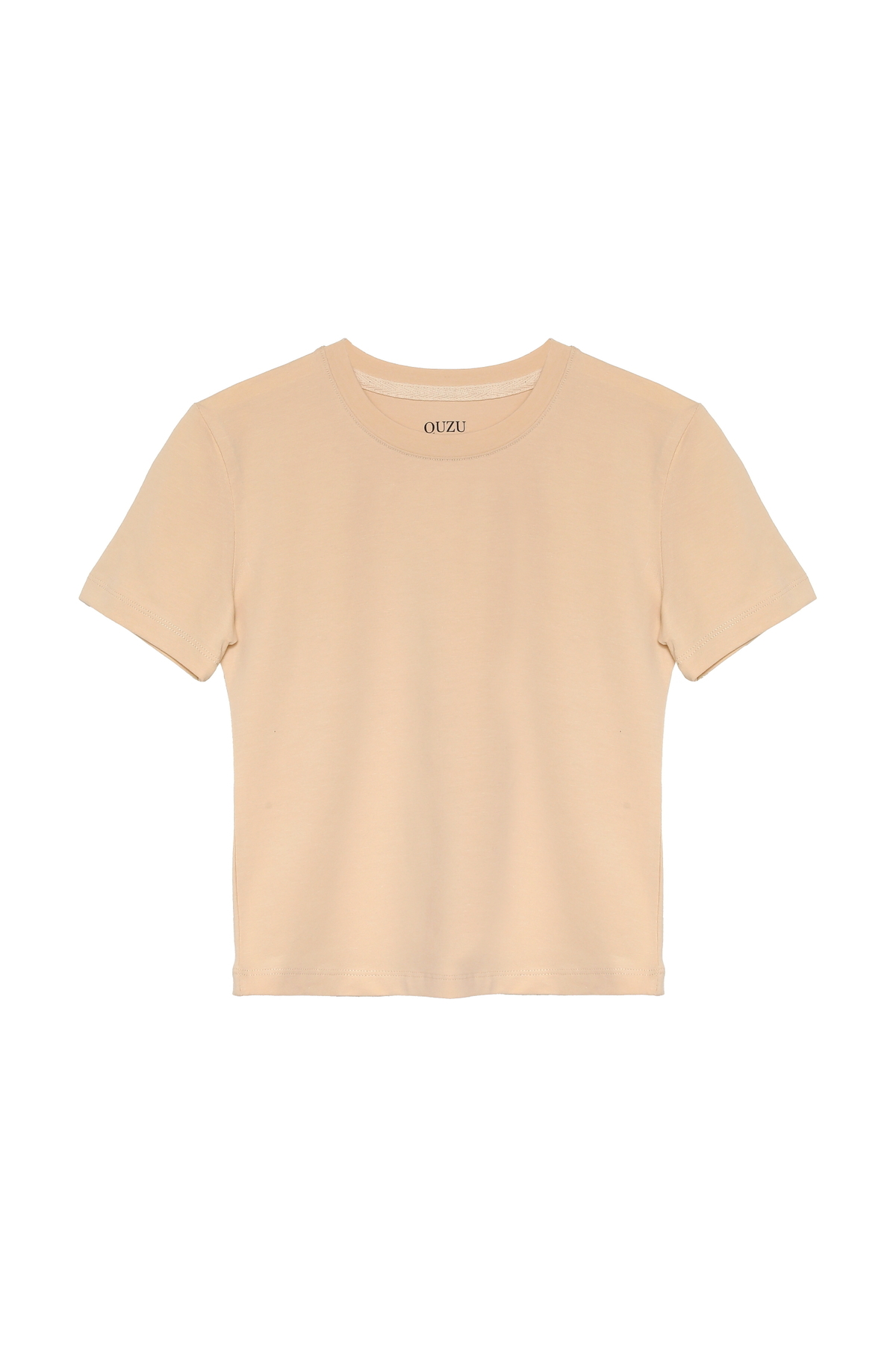 Quzu Kısa Kol Basic Crop Tişört Bej Özellikleri