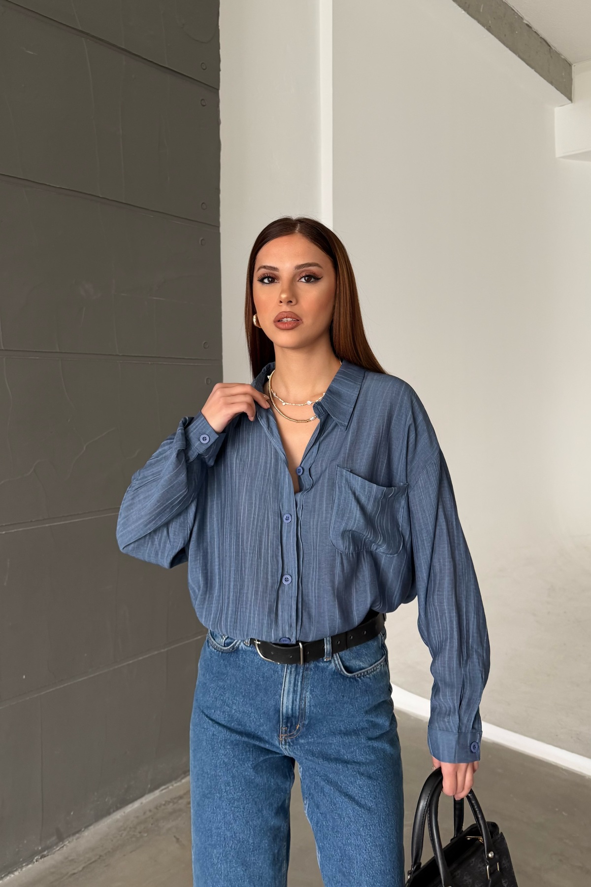 R-Style Tensel Oversize Gömlek