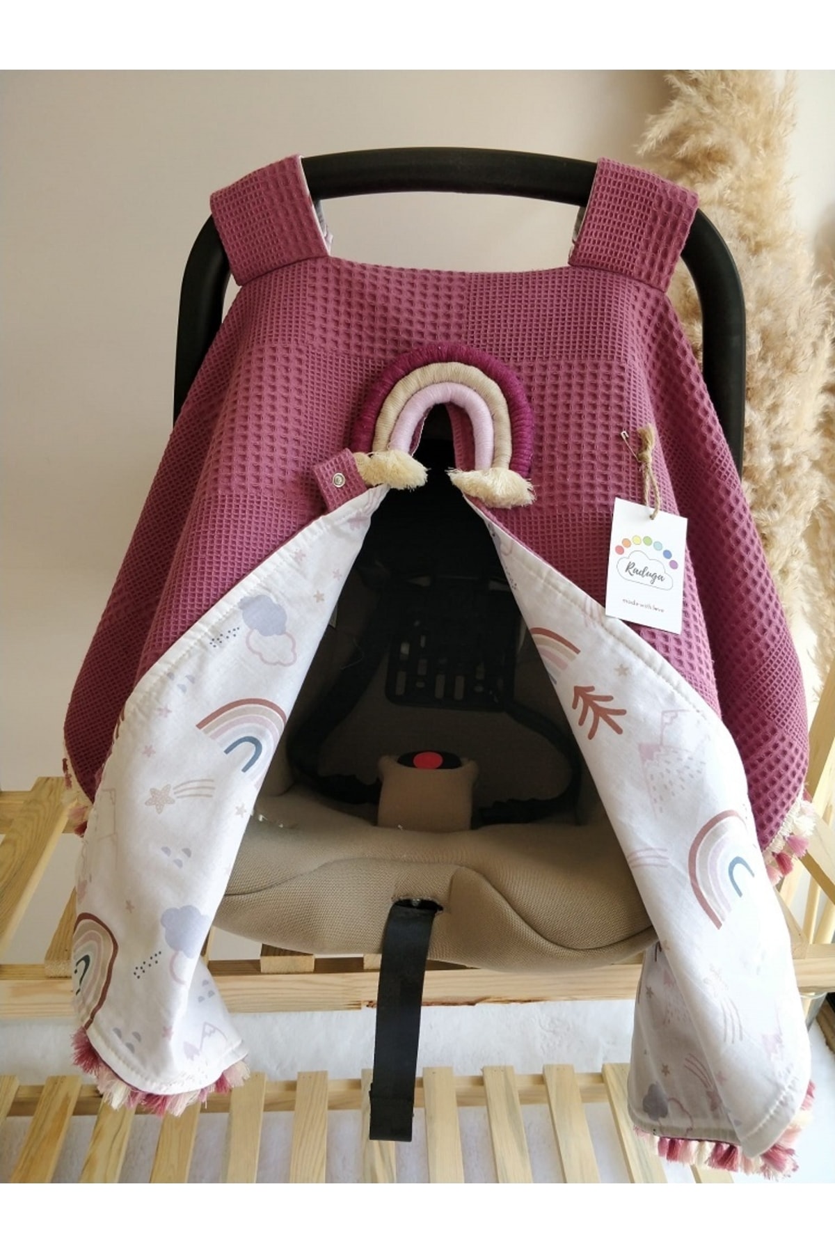Raduga Collection Tek Puset Örtüsü Tek Taraflı Vişne Gökkuşağı Renkli Püsküllü Özellikleri