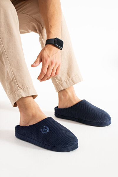 RedPlay Erkek Ev Terliği Gondol Fitilli Kadife Nakışlı Yumuşak Sessiz Taban Kışlık Terlik