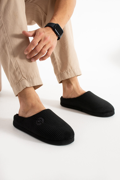 RedPlay Erkek Kışlık Ev Terliği Misafir Terliği Çeyiz Bohça Terlik Düz Süet Siyah