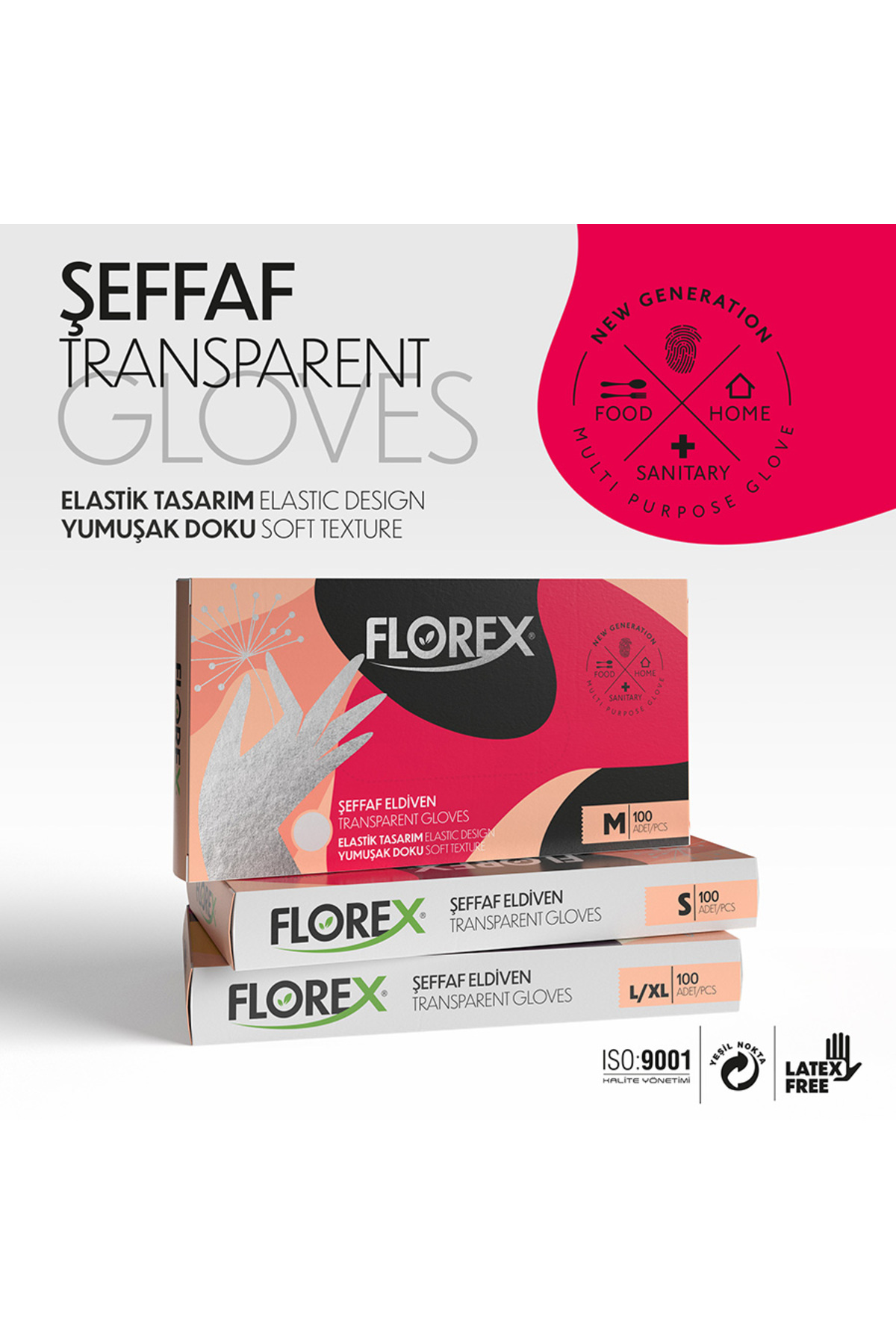 Reflex FLOREX ŞEFFAF ELDİVEN L-XL BEDEN 100 'LÜ Özellikleri
