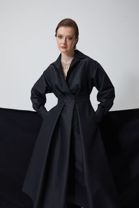 24674+ ÜrünJus De Pommes SİYAH DİK YAKA PAYET DETAYLI MİDİ BOY ELBİSE