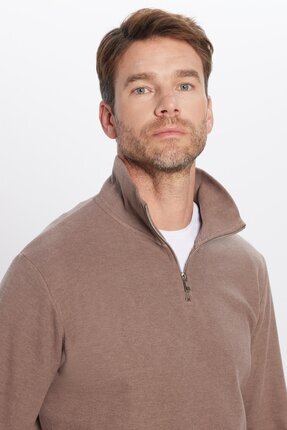 Pierre Cardin Ekru 3 İplik Regular Fit Fermuarlı Dik Yaka Basic Sweatshirt 50314044-VR019