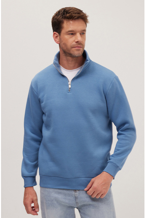 Pierre Cardin Lacivert 3 İplik Regular Fit Fermuarlı Dik Yaka Basic Sweatshirt 50314044-VR033