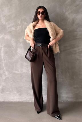 38445+ ÜrünVAGGON Kadın Kahve Yüksek Bel Havuç Pantolon