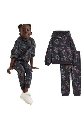 Perendi Erkek Çocuk Cep Nakışlı Aslan ve Dinazor 2'li Eşofman Altı Haki-Lacivert
