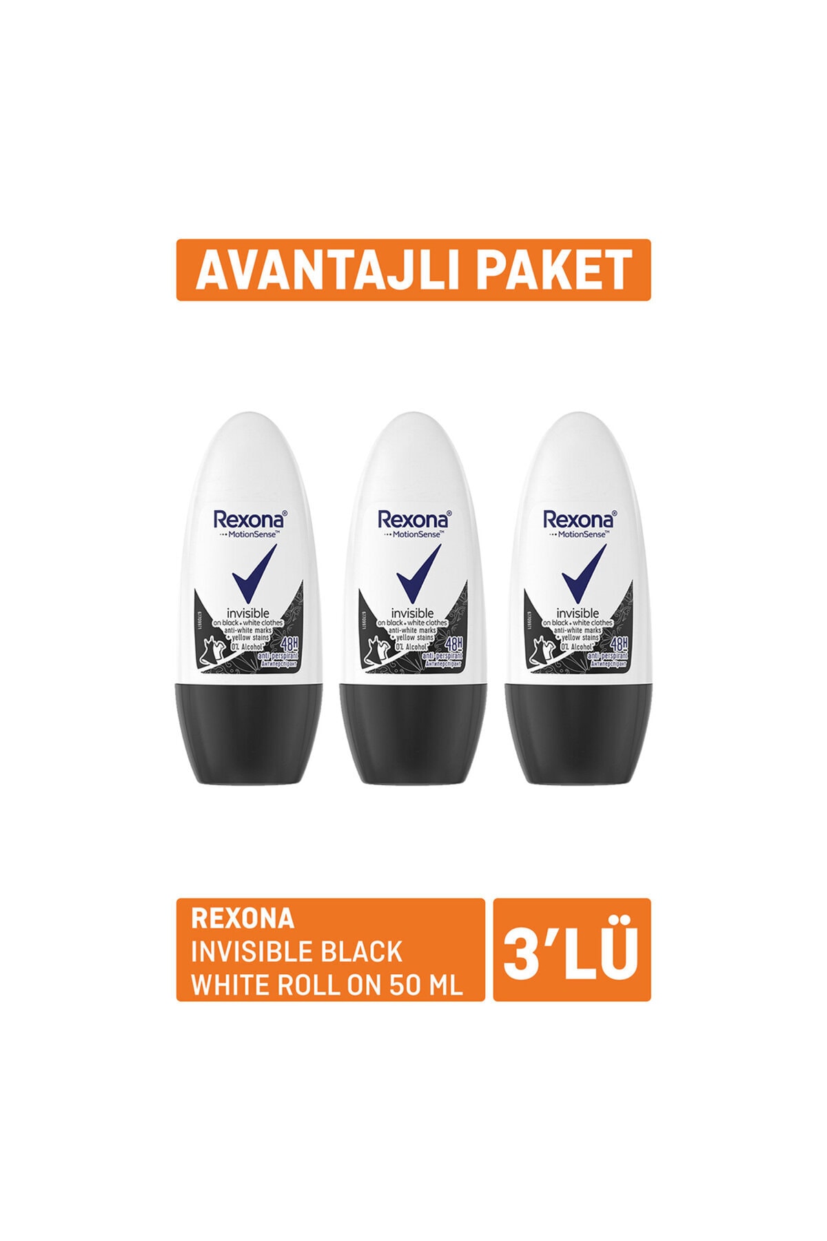 Rexona Invisible Black White Roll On 50 Ml x 3 Özellikleri