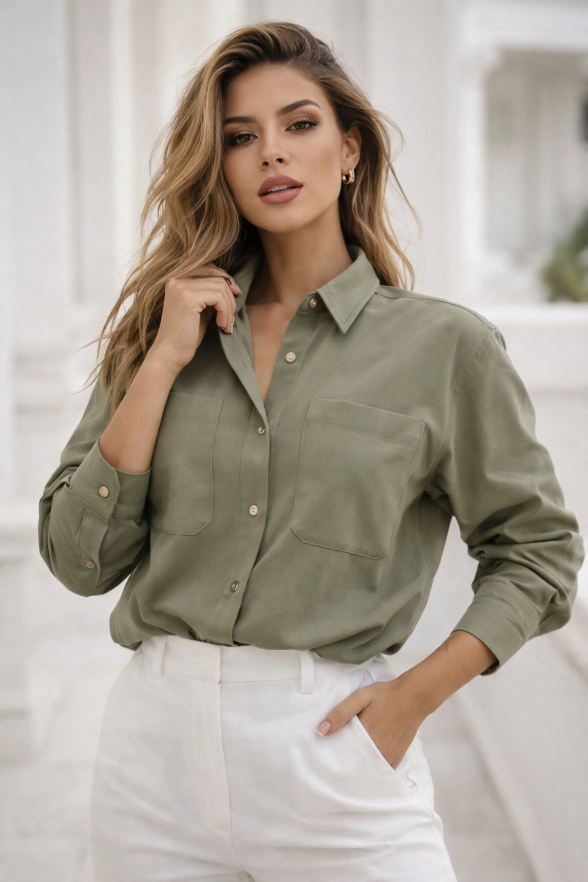 Rich Kadın Haki Oversize Cepli Basic Gömlek Özellikleri
