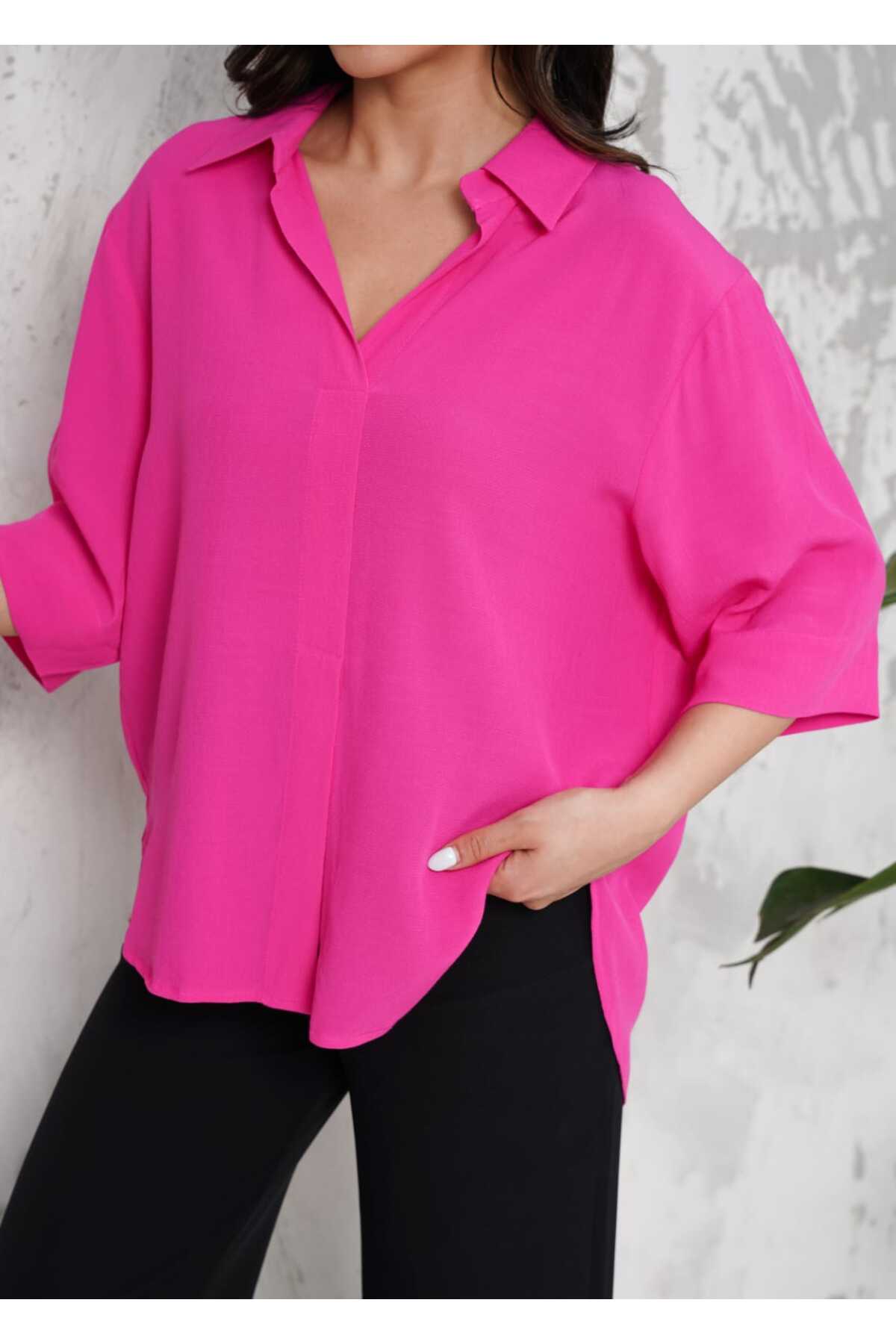 RİGALA FUŞYA KISA KOL BLUZ Özellikleri