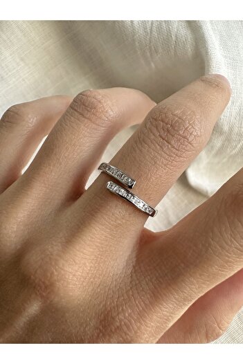 ringbox Gümüş Renkli Sarmal Baget Taşlı Yüzük