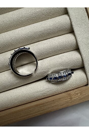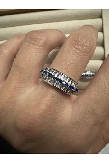 ringbox Gümüş Renkli Lacivert Baget Taşlı Yüzük