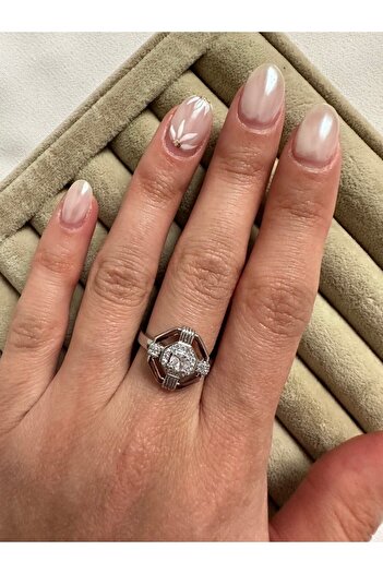 ringbox Gümüş Renkli Zirkon Taşlı Ayarlanabilir Vintage Yüzük