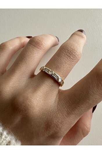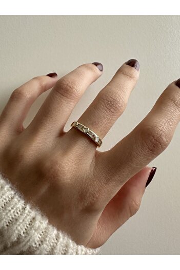 222+ Ürünringbox Gold Minik Yoncalı Baget Taşlı Yüzük