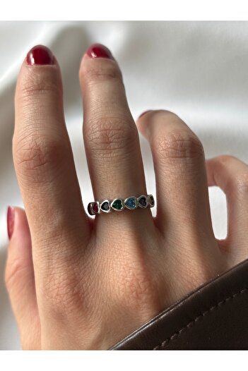 ringbox Gümüş Renk Sıralı Kalp Yüzük