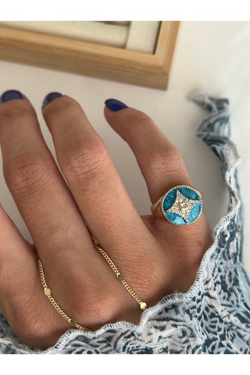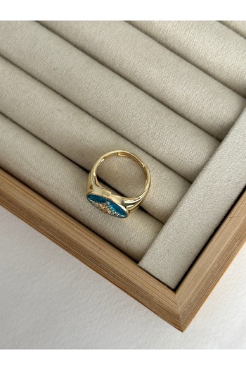 ringbox Gold Mavi Göz Detaylı Mineli Yüzük