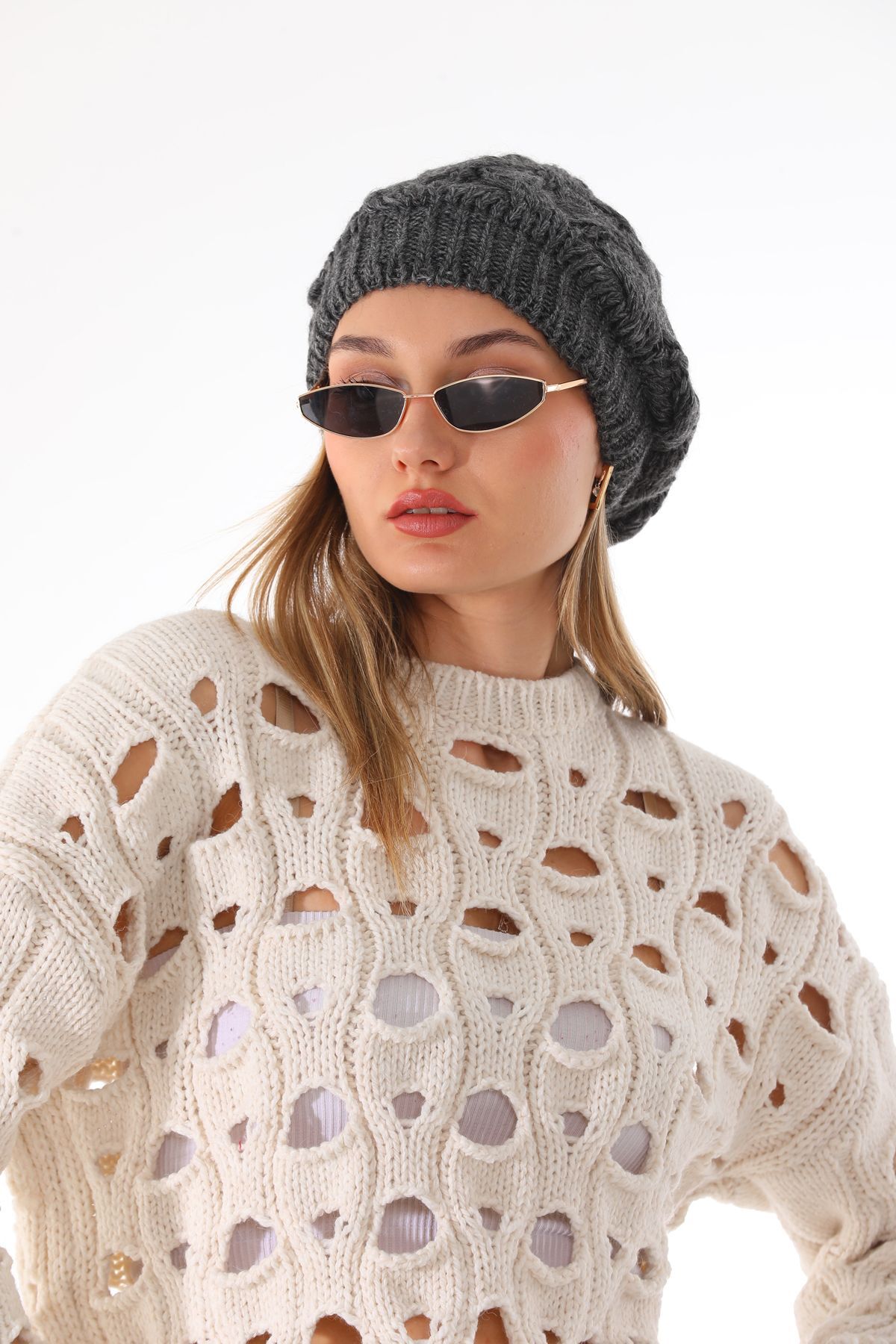 Ritagarcia Çift Kat Örme Antrasit Bere