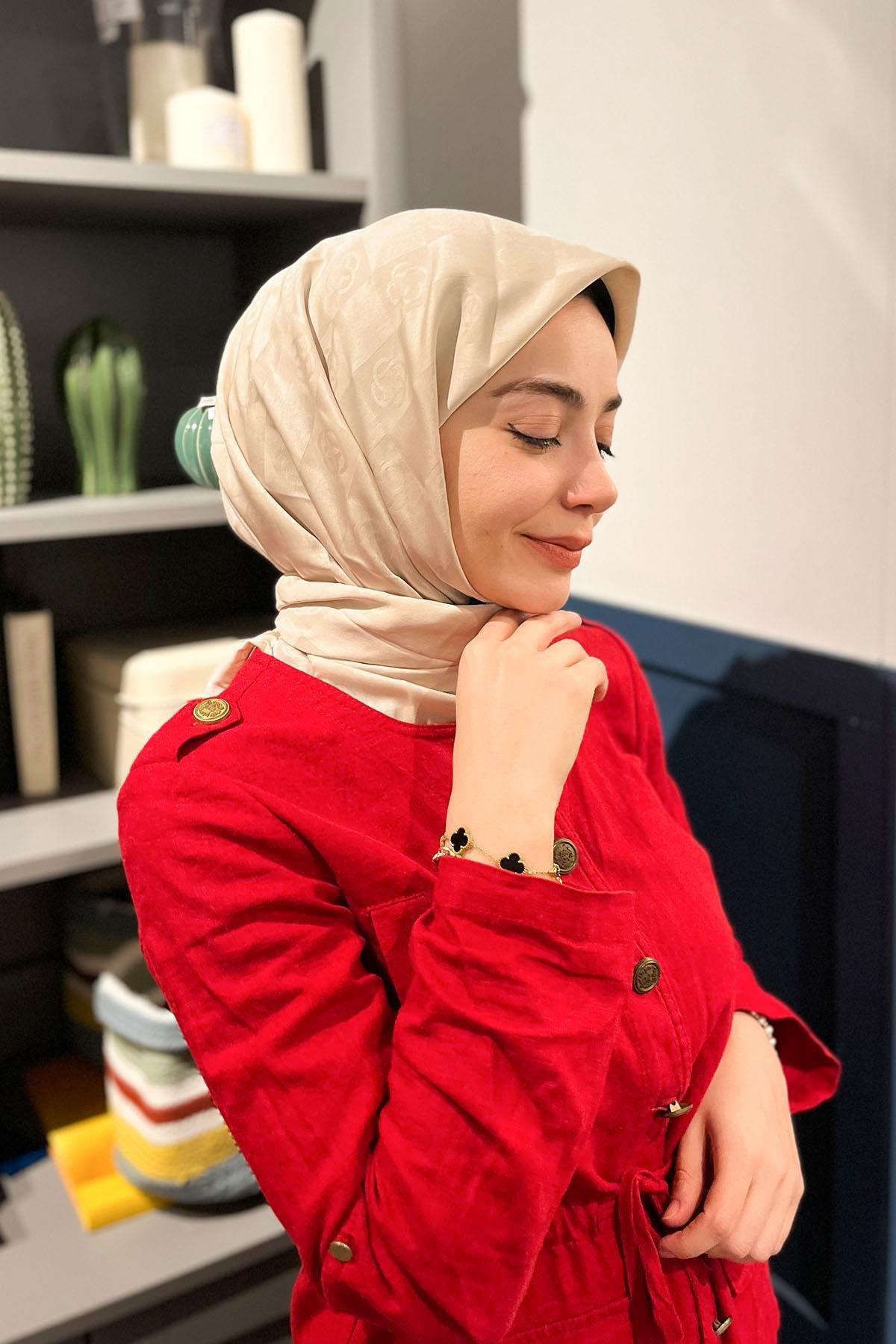 Caracteristici Aker Eșarfă Monogram Checker - Bej nisip 961