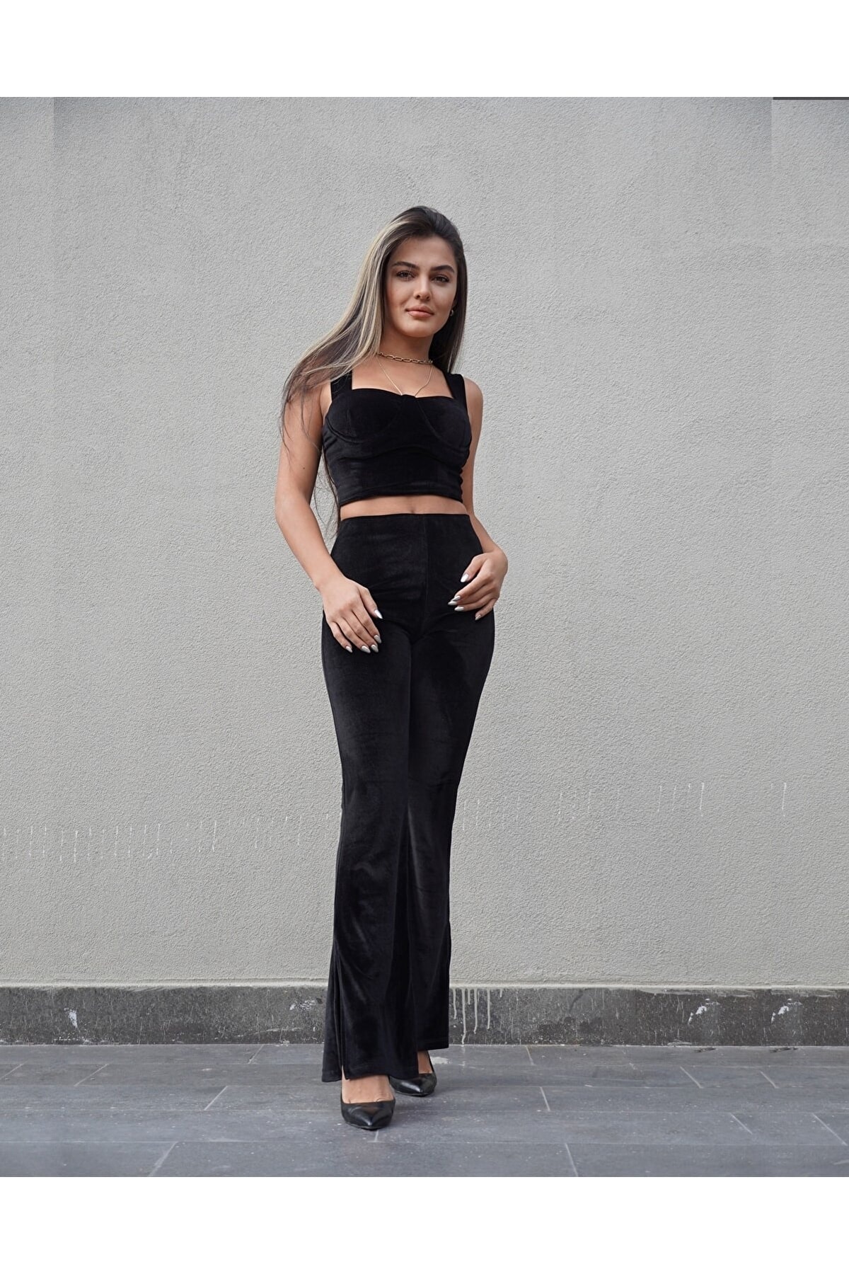 Caracteristici alenmoda Set de top-sub din catifea
