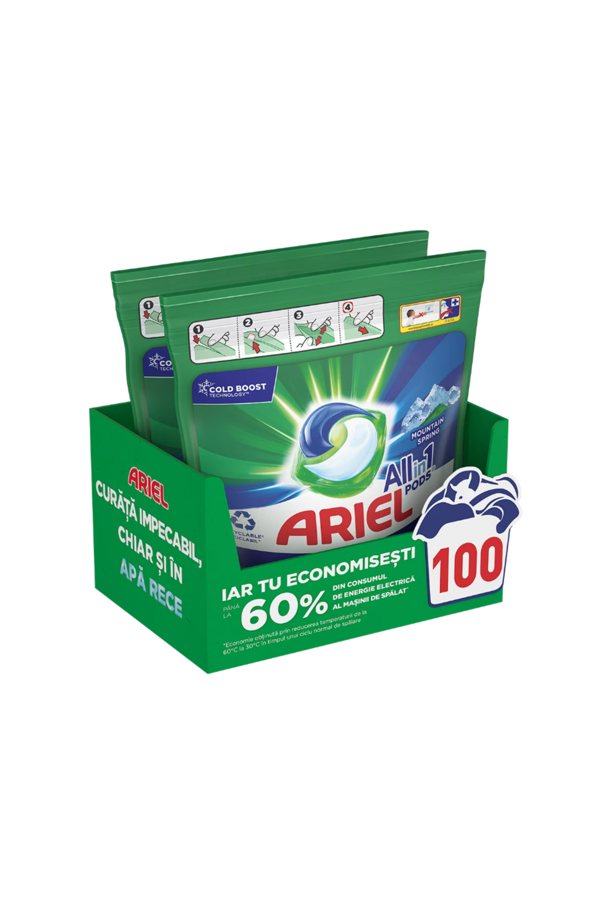 Caracteristici Ariel Capsule detergent multifuncționale - Mountain Spring, 100 spălări