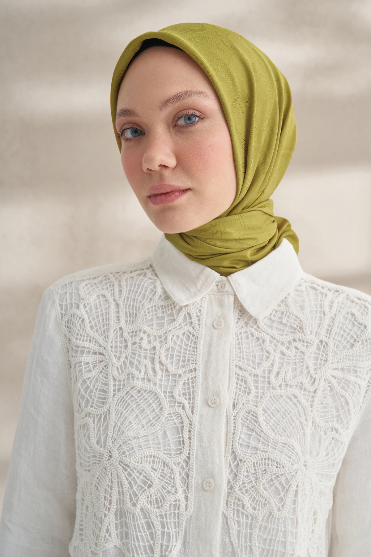 Caracteristici ARMANDA Eșarfă KREP JACQUARD Q PATTERN - VERDE ULEI