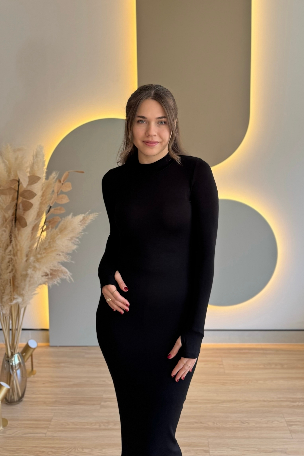 Caracteristici Aventien Rochie lungă neagră Finger Slip basic