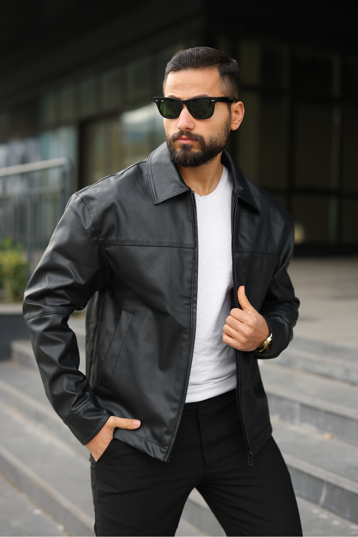 Caracteristici BASEL.CO Jachetă din piele elegantă, rezistentă la apă, Relax Fit basic