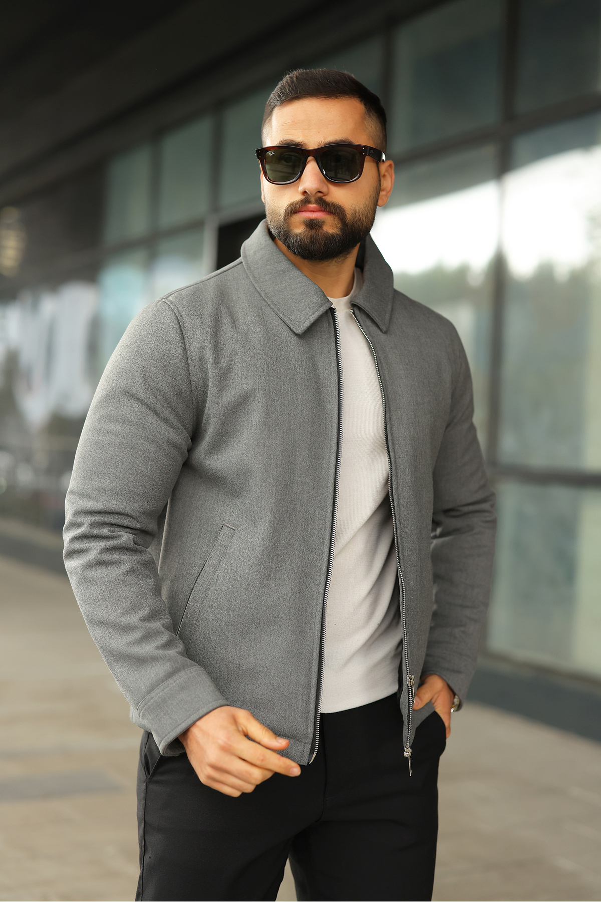 BASEL.CO slim fit basic Jachetă ușoară cu fermoar dublu