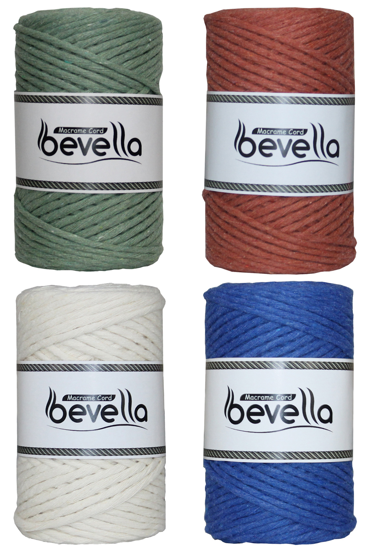 Bevella Macrame Cord Ecru, verde mentol, țiglă, albastru Saks, ață de macrame scanabilă de 3 mm