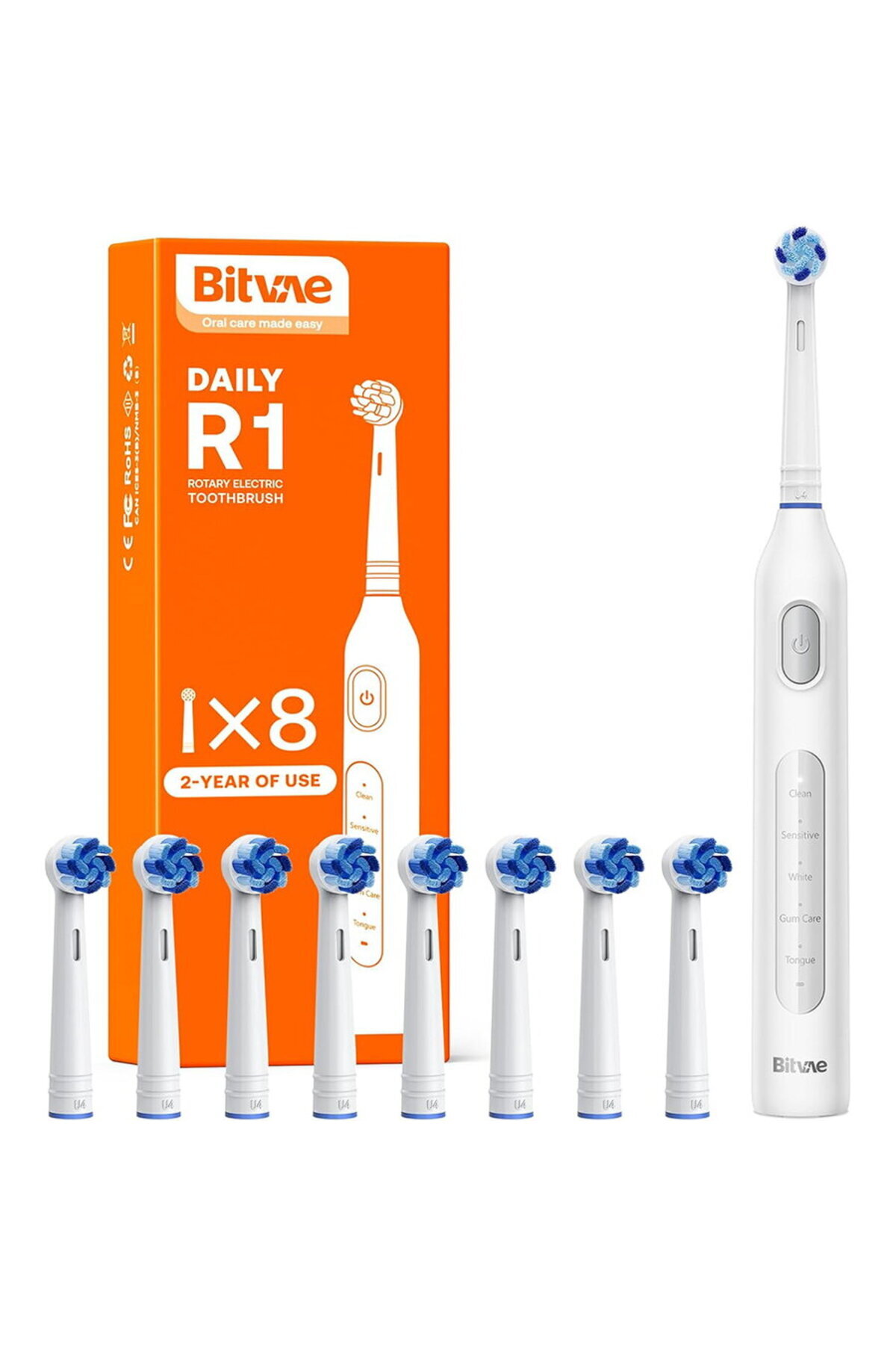 USB charging, IPX7 waterproofing, timer with 30-second pulses, brush heads designed to follow the natural tooth curvature